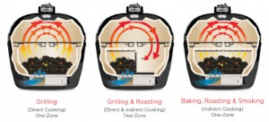 Το μοναδικό και αποκλειστικό οβάλ σχήμα, παρέχει την μεγαλύτερη δυνατή ευελιξία ψησίματος και απόδοσης από οποιαδήποτε άλλη κεραμική ψησταριά. Μπορείτε να έχετε πραγματικά ένα ταυτόχρονο άμεσο και έμμεσο ψήσιμο δύο περιοχών σε κάθε πλευρά της ψησταριάς σας. Ψήστε μπριζόλες στην πλευρά άμεσου ψησίματος και ταυτόχρονα ψήστε λαχανικά στην πλευρά έμμεσου ψησίματος. Το οβάλ σχήμα δημιουργεί επίσης μία εξαιρετικά αποδοτική περιοχή ψησίματος με πιο εύκολη πρόσβαση στο φαγητό σας. Χωράει περισσότερο φαγητό, όπως μπριζόλες, λουκάνικα, μεγάλα κομμάτια ψητού, παϊδάκια και ολόκληρα κοτόπουλα. Ψήστε, μαγειρέψτε ή καπνίστε περισσότερο φαγητό μεμιάς!